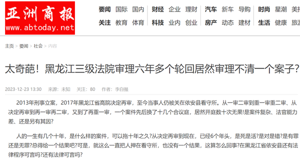 2013年刑事立案,2017年黑龙江省高院决定再审,至今当事人仍被关在依安县看守所。从一审二审到重一审重二审、从决定再审到再一审再二审,又到了再重一审,一个案件先后换了十几个合议庭,居然开庭数十次无果!是案件复杂、法官能力差、还是另有其因?