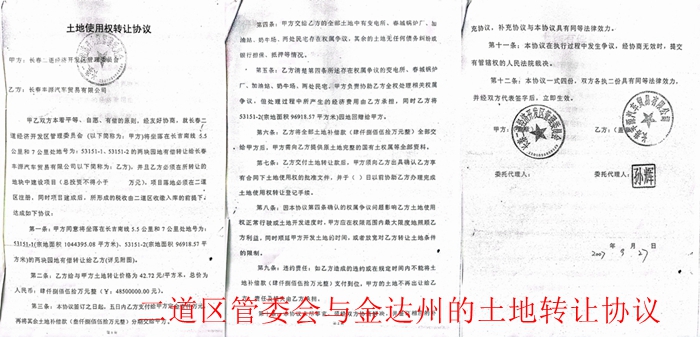 2007年9月27日,二道经济开发区管委会还没从工大手里购买果树场及锅炉厂土地的前二天,便凭空臆想将原绿园区果树场及锅炉厂土地(没有经过招、拍、挂)私下以每平方米42.72元总价4850万元卖给长春丰源汽车贸易有限公司(注:金达州)做驾校用地。此次交易二道经开管委会获得回赠9万多平方米、价值1000多万元的另一块土地。其买卖合同中也写明交易土地跟春城锅炉厂等多家土地有争议,争议由二道区政府解决。十多年来,锅炉厂多次找二道区政府解决争议纠纷未果,问题没解决反而遭来了二道区英俊镇城管们的百般骚扰和侵害。锅炉厂院内彩钢库房先被强拆,耕地多次被城管用垃圾强行填埋等等。而更奇葩的是,长春二道经济开发区管委会的土地买卖违反了最高法《关于国有土地使用权合同纠纷案件的司法解释》【2005】5号文件第二条,开发区管委会作为出让方和受让方签订的土地使用权转让合同应当认定为无效。此案至今仍然无人监管。