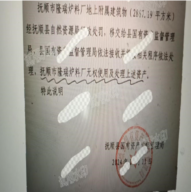 6.抚顺县自然资源局(国土局)没收隆瑞厂建筑的行政处罚,形同儿戏,几年不执行,给犯罪分子诈骗创造条件。